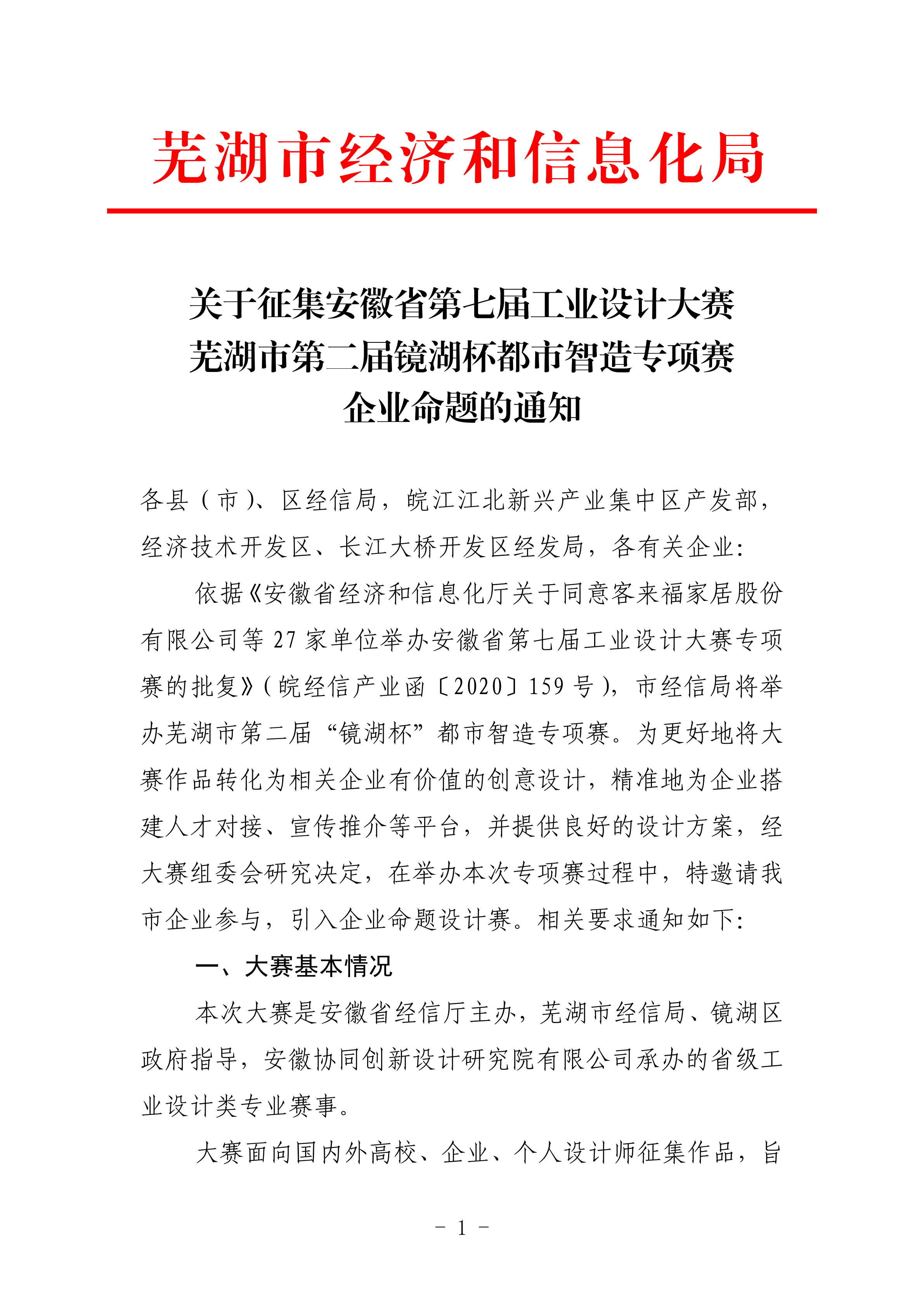 關(guān)于征集安徽省第七屆工業(yè)設(shè)計大賽蕪湖市第二屆鏡湖杯都市智造專項賽企業(yè)命題的通知