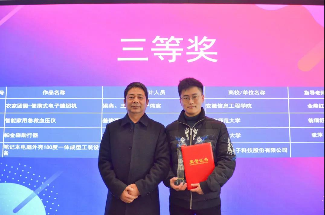 12月23日,安徽省第七屆工業(yè)設(shè)計大賽蕪湖市暨第二屆“鏡湖杯”都市智造專項賽頒獎儀式在市企業(yè)服務(wù)中心舉行。安徽師范大學(xué)美術(shù)學(xué)院黨委書記王繼民、蕪湖市經(jīng)濟和信息局總工程師徐虎、蕪湖市經(jīng)濟和信息局產(chǎn)業(yè)政策與法規(guī)科陳鴻寶、鏡湖區(qū)經(jīng)濟和信息化局局長方仲明等領(lǐng)導(dǎo)出席會議。全市工業(yè)設(shè)計企業(yè)負責(zé)人、高校教師、學(xué)生代表參加頒獎儀式。